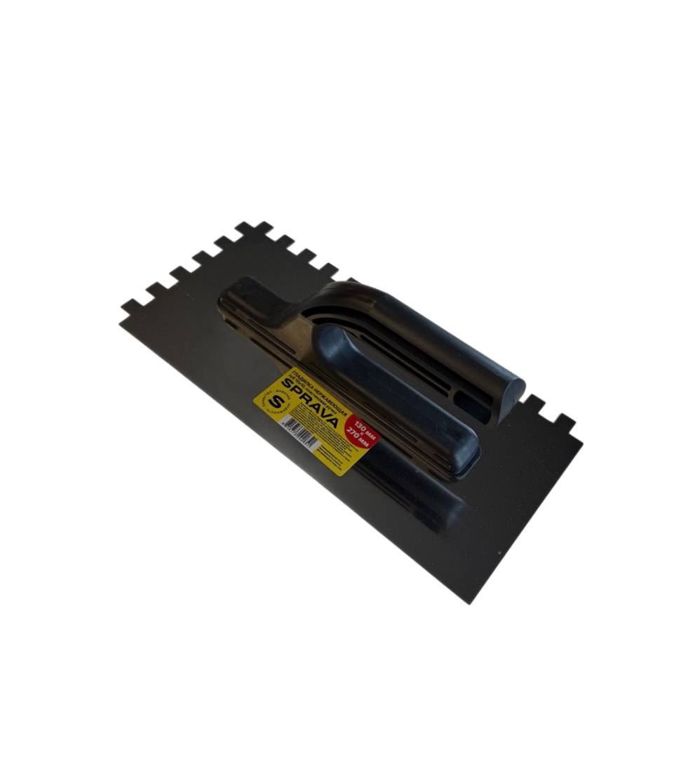 Гладилка нержавеющая сталь, пластиковая ручка, SPRAVA, 130х270 зуб 10х10мм